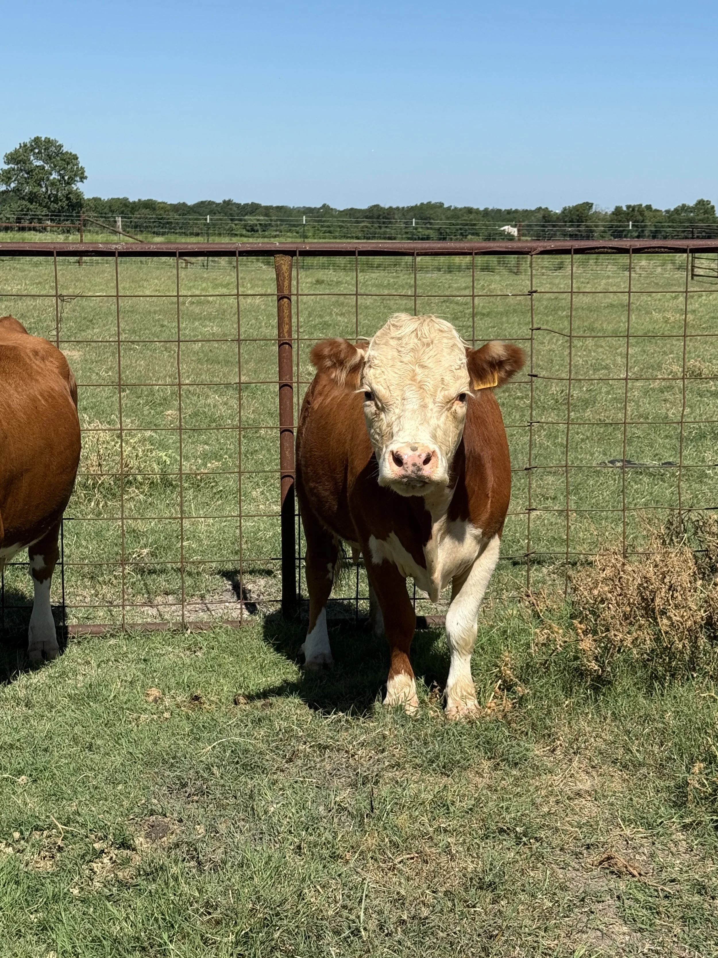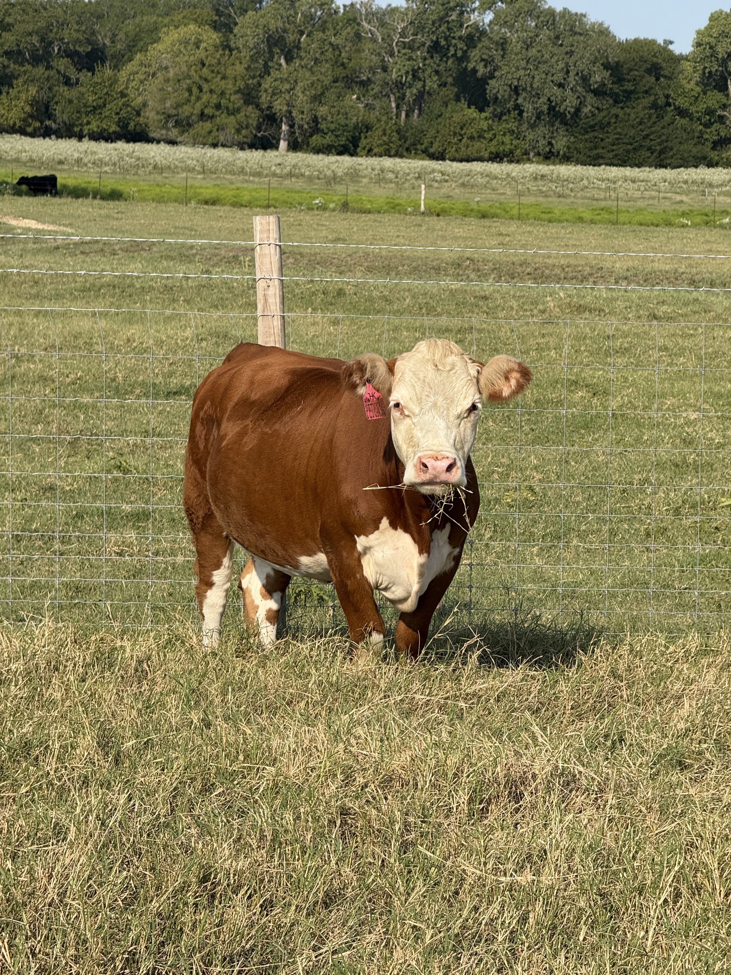 Petunia is a registered mini Hereford cow. She is currently bred to Rex for a Spring 2026 calf.