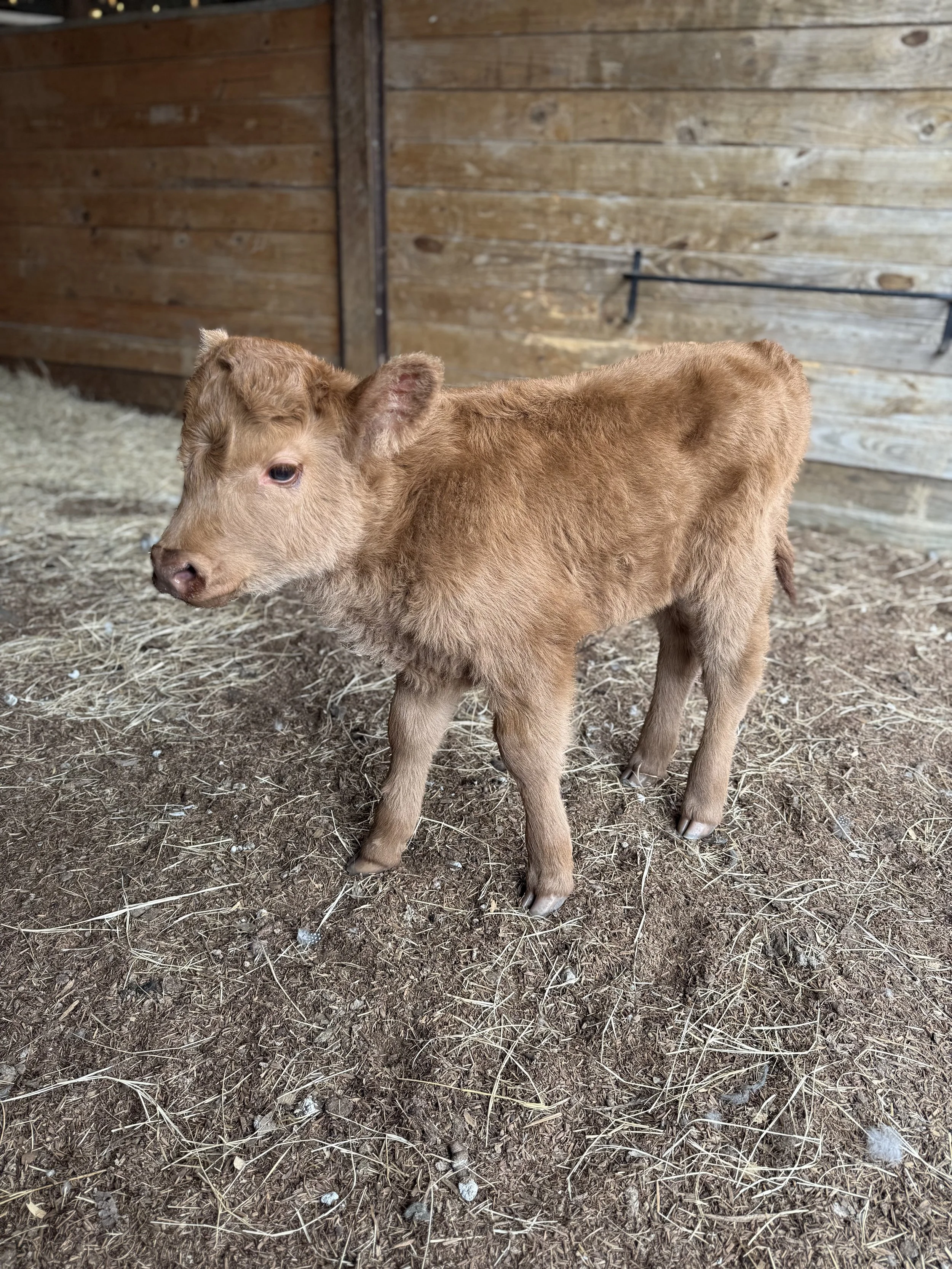 Additional Information: Wanda is a mini wagyu/highland cross heifer. She would be excellent to go any direction with! Use her to raise beef for you or breed her for pets. She is on the bottle and ready to go to her new home now.