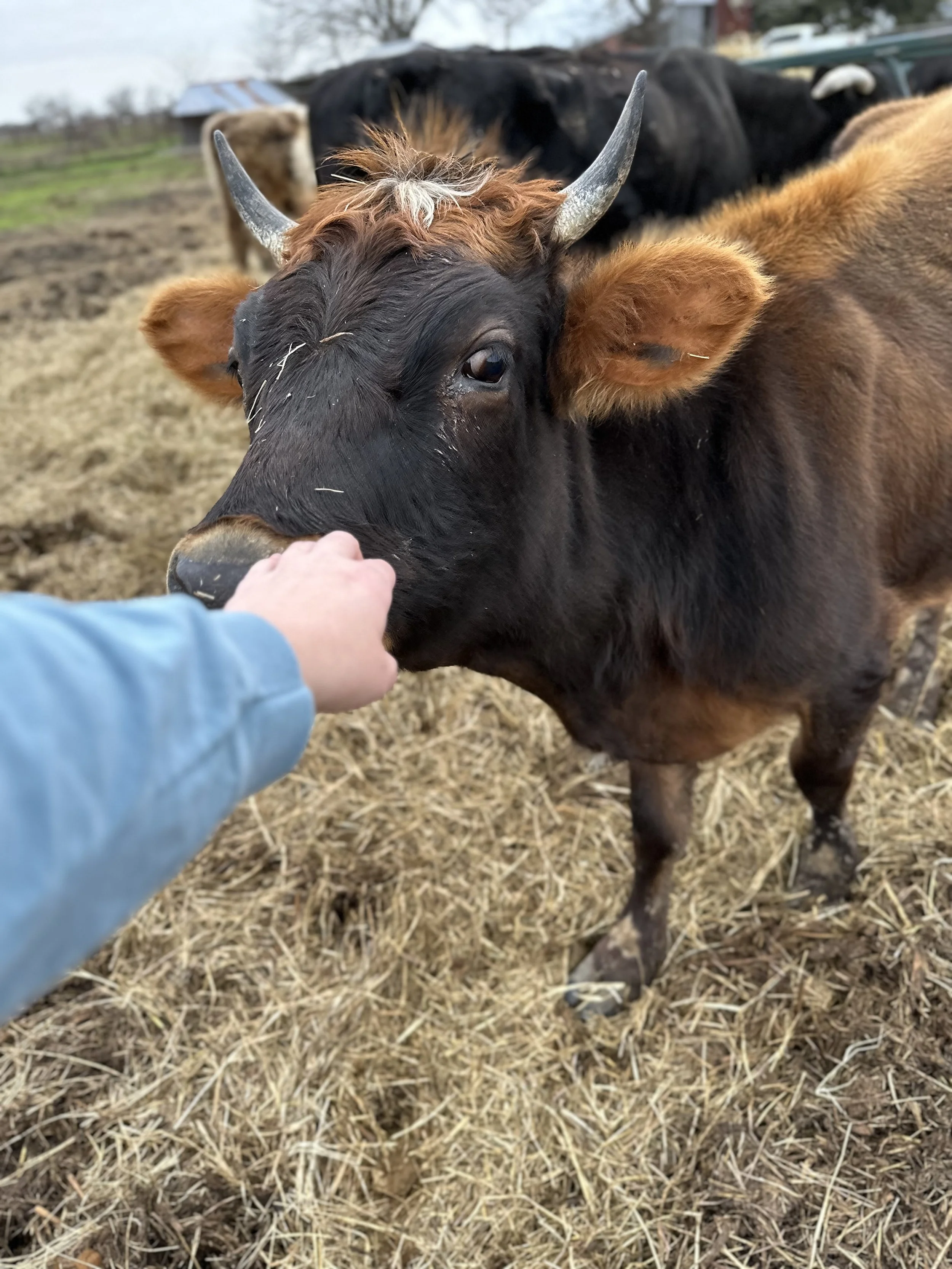 Dot is a mini paint Belfair (Jersey/Dexter cross) cow. She is currently exposed to our micro mini belted galloway bull. She has been disease tested and is negative.
